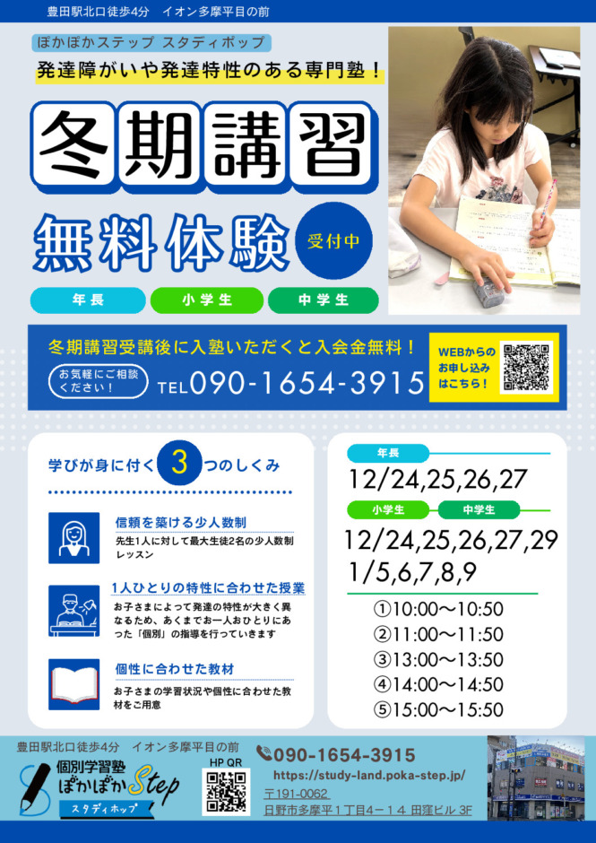 発達障害を持つお子さんが正しい生活習慣を身につけるためには、睡眠、食事、日常のルーチンを整えることが重要です。また、ストレス管理や心のリラックスも大切で、親のサポートと理解が欠かせません。豊田駅、日野市、八王子で学習支援を検討されている方は、個別指導塾「スタディホップ」にぜひご相談ください。お子様の成長をしっかりと支えるために、私たちは全力でサポートいたします。
